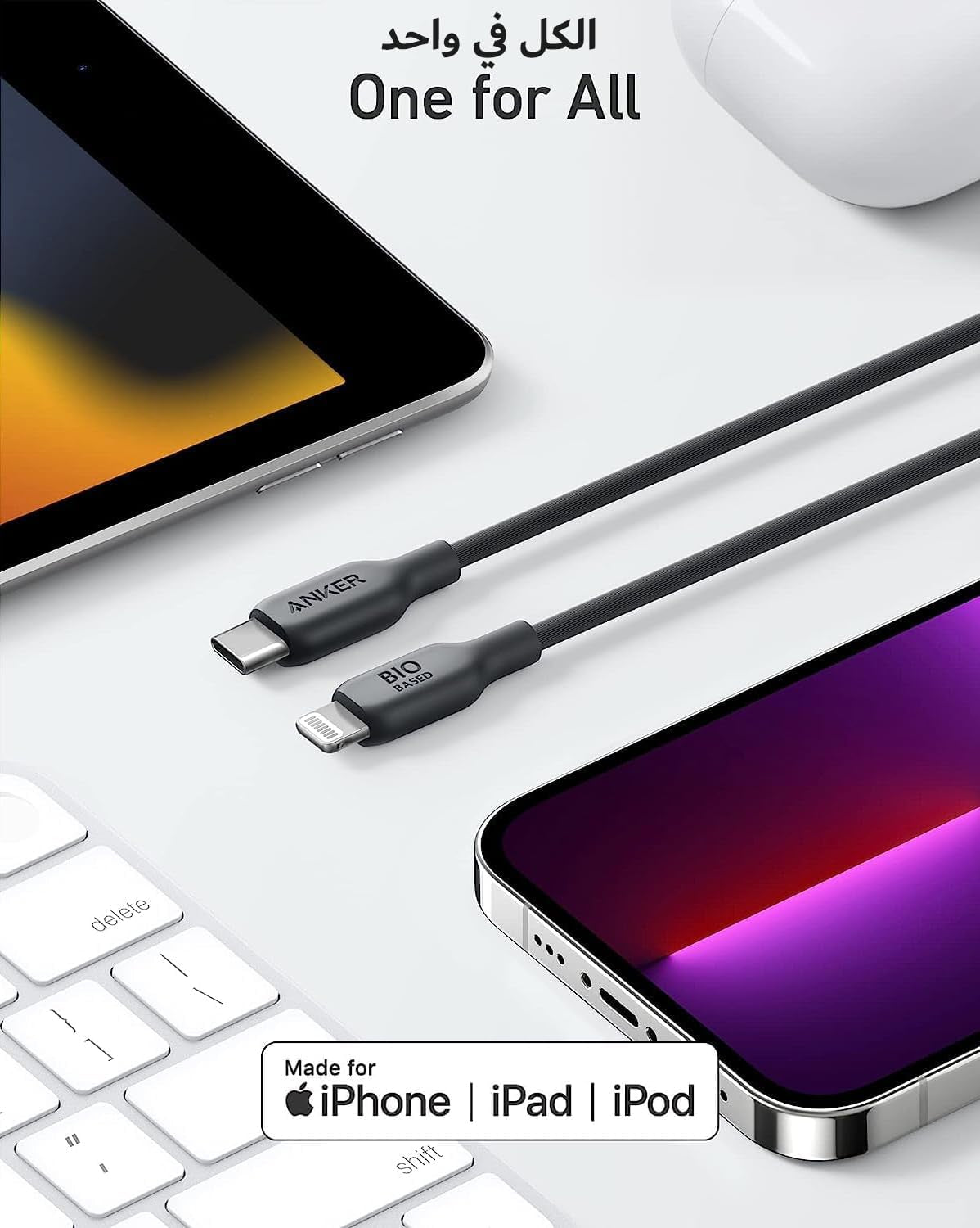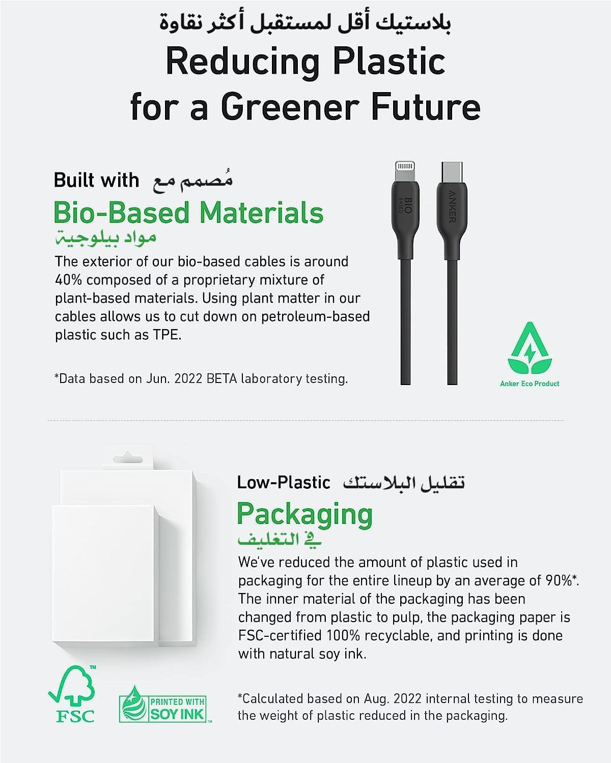 Upgrade your daily charging with Anker 542 USB-C to Lightning Cable (Bio-Based). The outer body uses plant-based materials (like corn and sugar cane) to reduce reliance on petroleum-based plastics—without sacrificing durability.