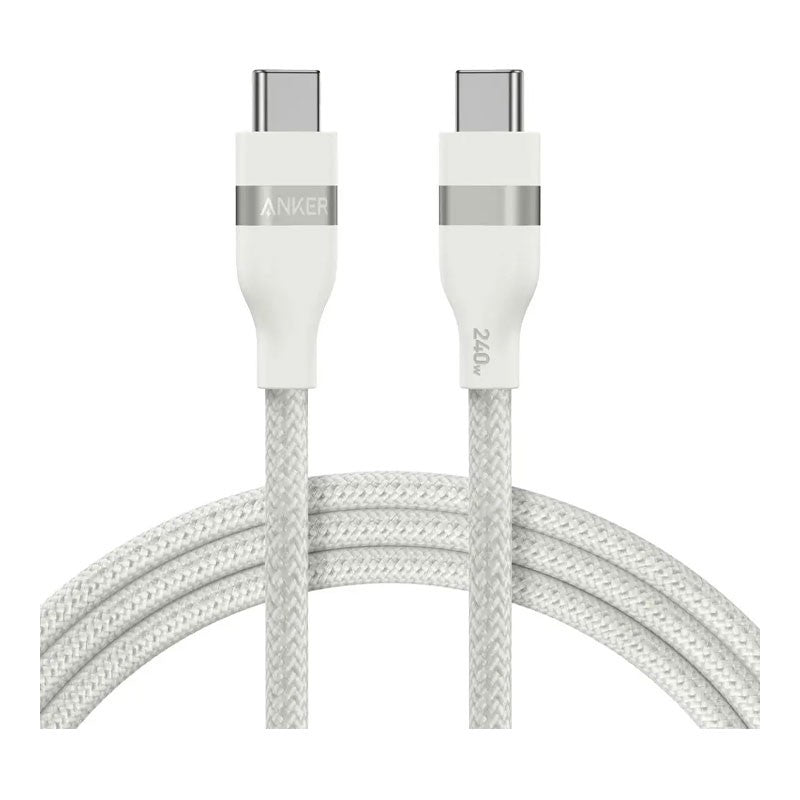 The Anker USB-C to USB-C Cable (Model A82E2611) delivers up to 240 W of power and supports high-speed charging for USB-C compatible devices including laptops, tablets, phones, and more. Designed with a robust upcycled braided exterior, this cable is built to last and reduce environmental impact.