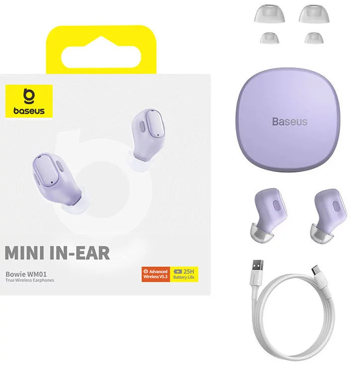 The Baseus Bowie WM01 is a remarkably compact and lightweight set of TWS wireless earphones designed for ultimate portability and comfort. Featuring the latest Bluetooth technology and a long-lasting battery, these earbuds provide a seamless and high-quality audio experience for daily commuting, workouts, and leisure.