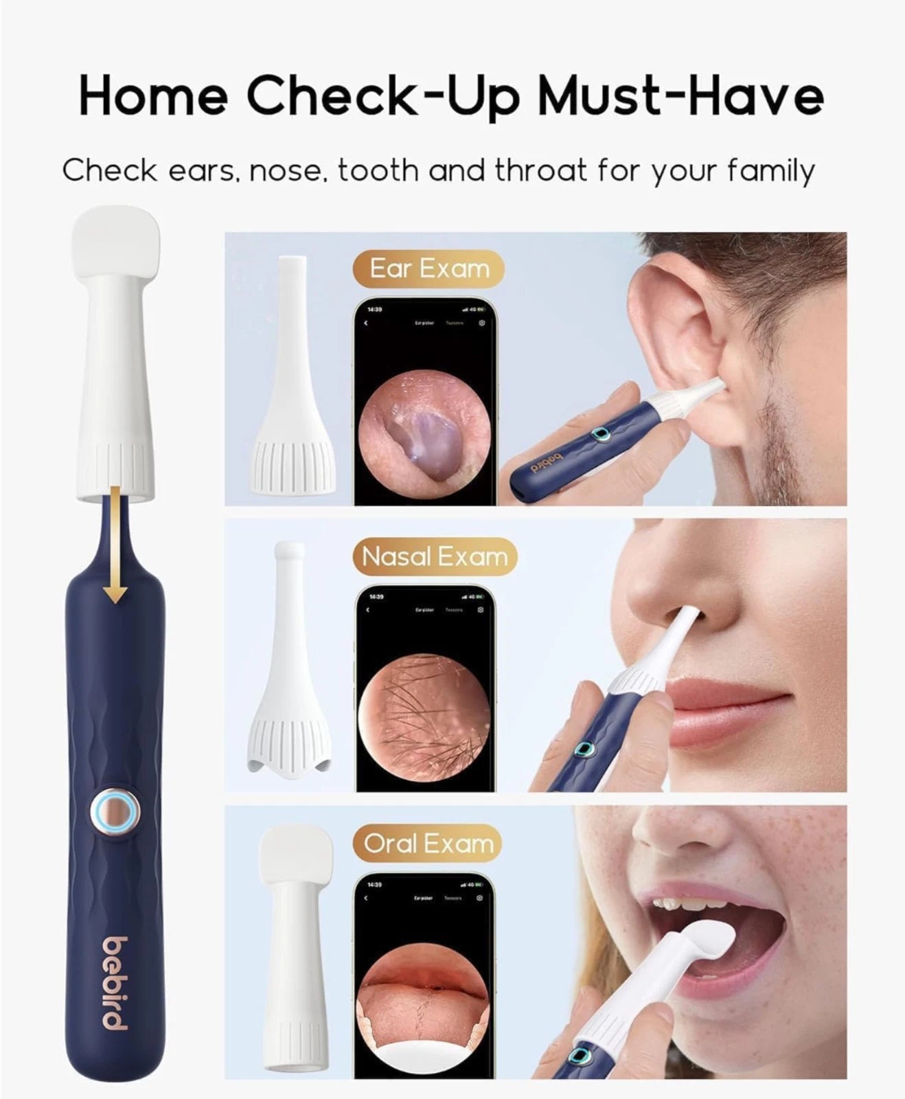 Safety and comfort are integrated into every detail of the E33R. It comes with multiple soft, skin-friendly silicone ear spoons that are gentle on the ear canal, making it suitable for both adults and children. The device utilizes a high-speed Wi-Fi chip for a stable, lag-free visual experience. With its long-lasting rechargeable battery and ergonomic non-slip design, the Bebird E33R is an essential modern health tool for every household.