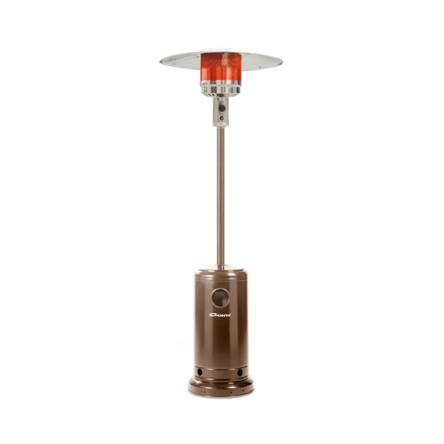 Enjoy warm atmospheres in your garden or patio with the Conti Outdoor Gas Heater, providing wide circular heating through its reflective umbrella design and a luxury bronze finish that adds a classic touch to your gatherings.