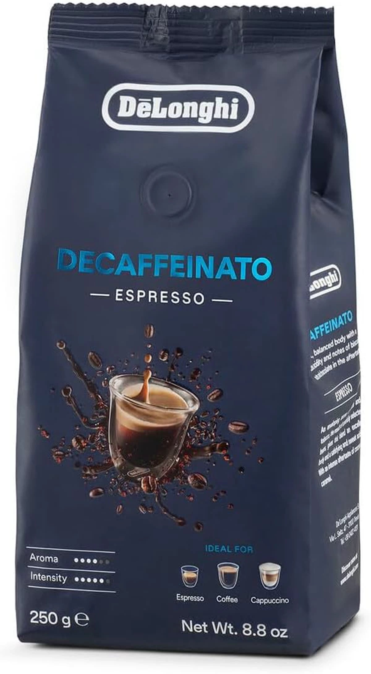 Packaged in a 250g vacuum-sealed bag with a one-way valve, De'Longhi ensures maximum freshness and aroma retention. Whether you enjoy a late-night cup or simply want to reduce your caffeine intake, this decaf blend delivers a satisfying and aromatic coffee experience without compromise.