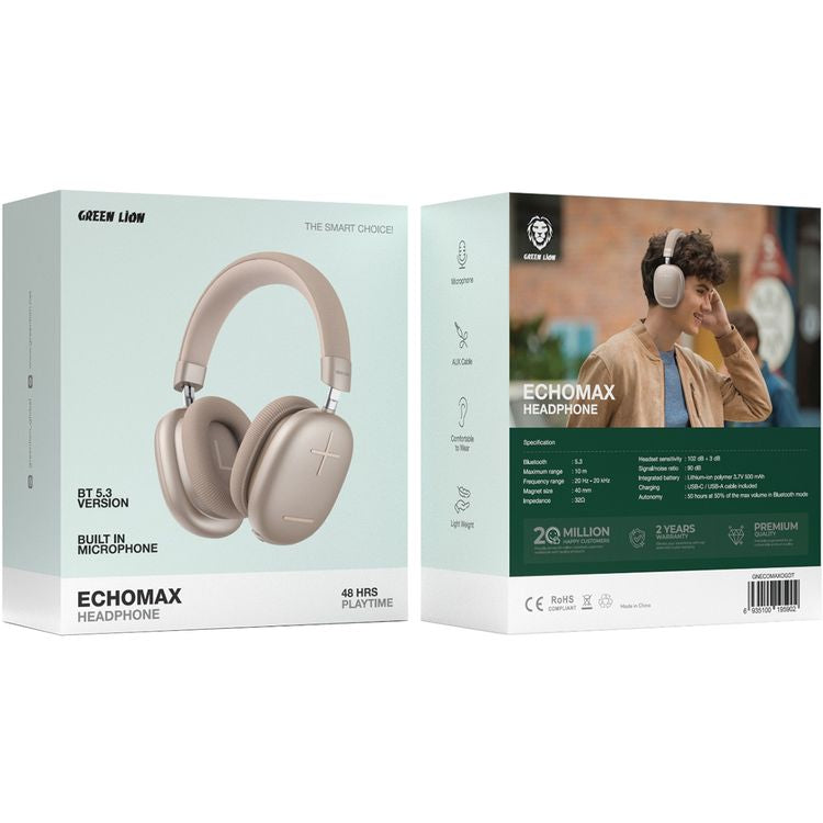 The Green Lion Echo Max Headphones in the stunning Desert Titanium finish combine cutting-edge audio technology with a premium, modern aesthetic. Featuring soft ear cushions and a foldable design, these headphones offer up to 30 hours of high-fidelity sound for a sophisticated listening experience.
