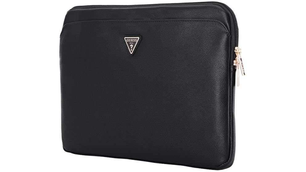 Protect your laptop in style with the Guess 14-inch Grained PU Laptop Sleeve. Featuring a luxurious textured finish and the iconic metallic Guess logo, this slim sleeve offers sophisticated protection for your daily commute.