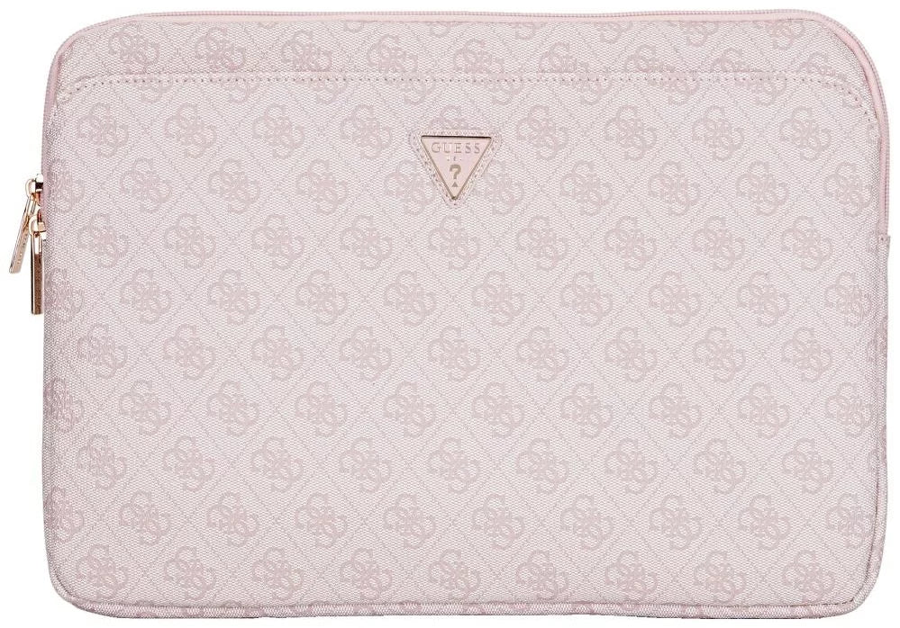 The **Guess 4G Zipper Pocket Triangle Logo Laptop Sleeve** is designed for the modern professional who seeks a perfect balance between high-fashion and daily utility. Crafted from premium materials and embossed with the legendary 4G monogram pattern, this sleeve is accented by the world-famous metallic Guess Triangle logo. Whether in executive **Black**, heritage **Brown**, or chic **Pink**, it offers a world-class look for your 14-inch MacBook or laptop.