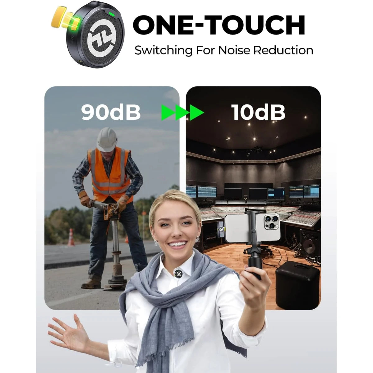 A compact wireless lavalier microphone system compatible with Type-C and Lightning devices, designed for livestreaming, vlogging, and content creation.
