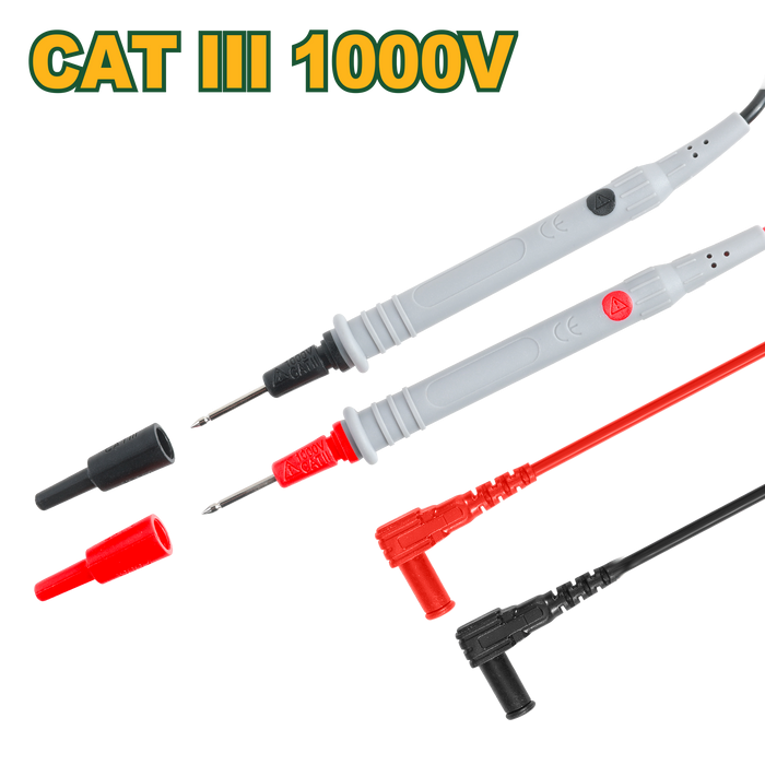 Rated to 1000 V CAT III, safe for high-voltage testing.