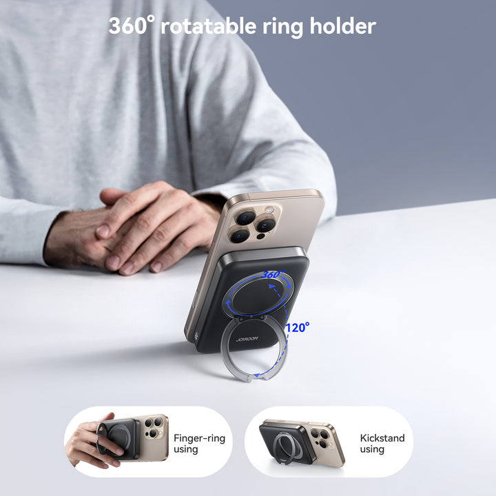 Beyond charging, the JR-PBM12 features an integrated foldable ring holder that serves as both a secure finger grip and a convenient kickstand for hands-free media viewing. It supports up to 22.5W wired fast charging via the USB-C port, allowing you to power up multiple devices simultaneously. Its compact and sleek design makes it an essential accessory for modern users who prioritize functionality and style.