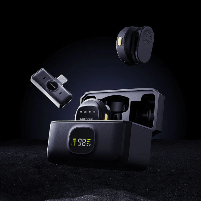 The Lenyes LM204-TC is a professional-grade wireless lavalier microphone system featuring dual transmitters, a Type-C receiver, and intelligent noise cancellation for crystal-clear audio recording.