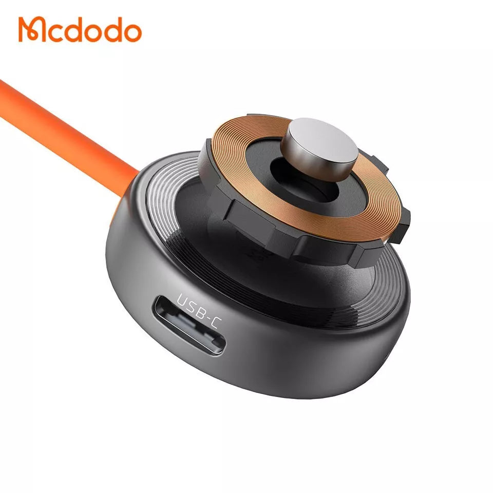 The Mcdodo CH-6840 is a compact and portable magnetic wireless charger designed specifically for Apple Watch users. Featuring dual input ports (Lightning and USB-C), it offers versatile charging options without the need for additional cables. Its sleek design, combined with a durable zinc alloy casing and a stylish orange lanyard, ensures both functionality and portability