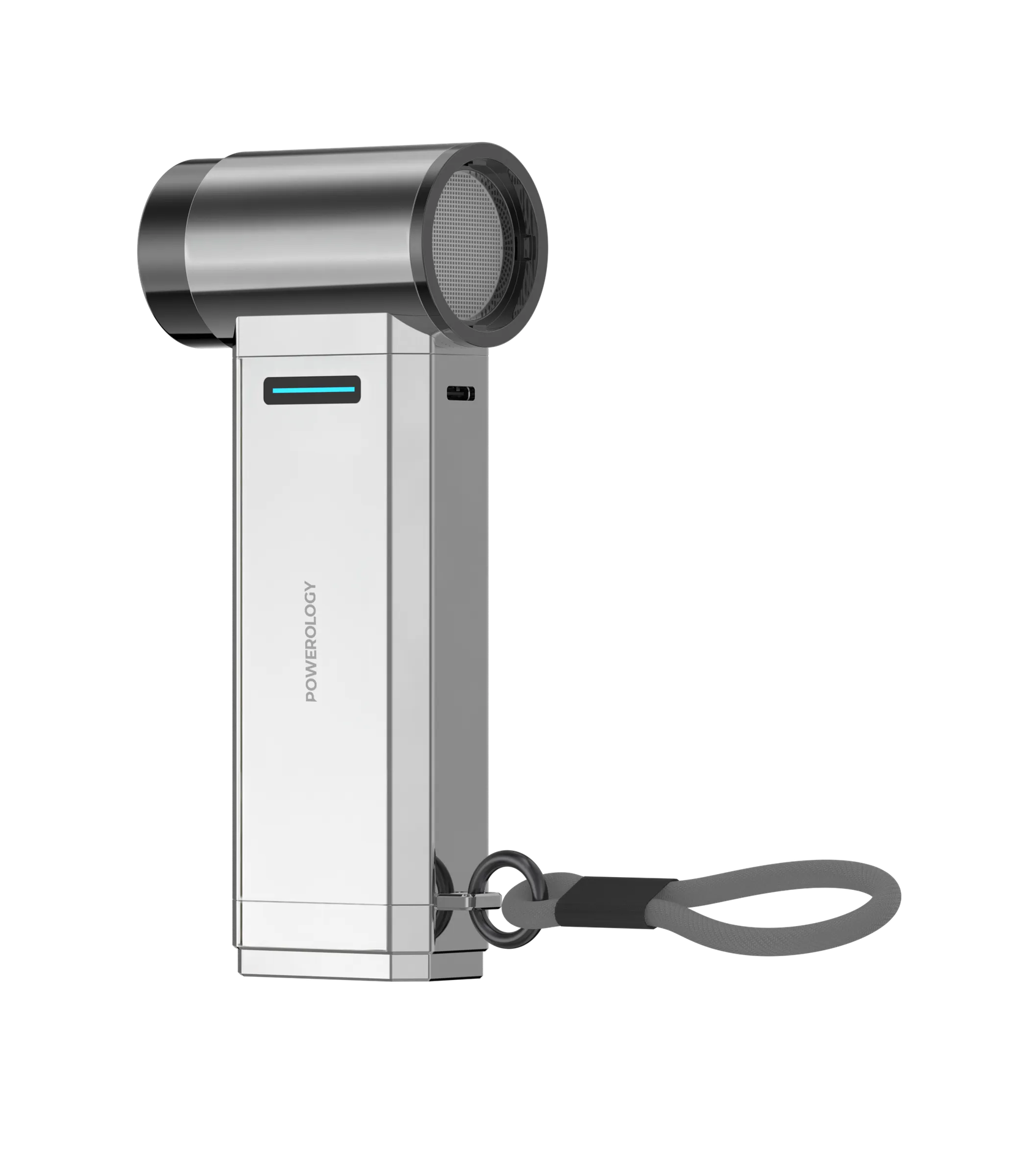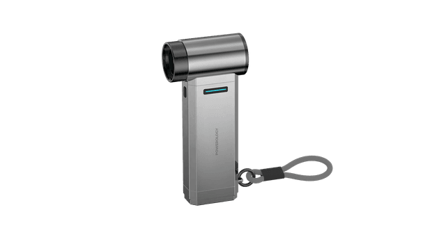 The Powerology Turbo Blower is a high-performance portable jet fan designed for versatile cleaning and drying. Featuring a powerful motor reaching 130,000 RPM and a built-in 4000mAh power bank, this sleek silver tool is perfect for dusting electronics, drying surfaces, and outdoor use.