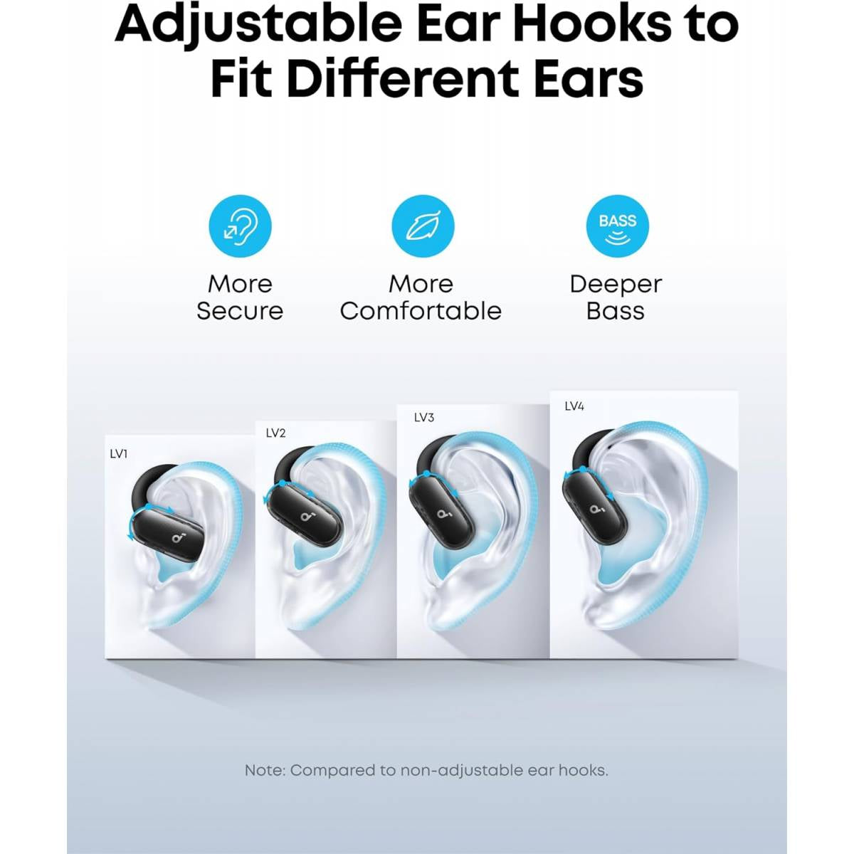 Experience true freedom with the **Soundcore V40i Open-Ear Headphones**. Unlike traditional earbuds, the V40i sits comfortably outside your ear canal, allowing you to stay aware of your surroundings in Amman while enjoying high-fidelity audio. The innovative **4-position adjustable ear hooks** ensure a personalized fit for any ear size, making them perfect for sports and daily commutes.