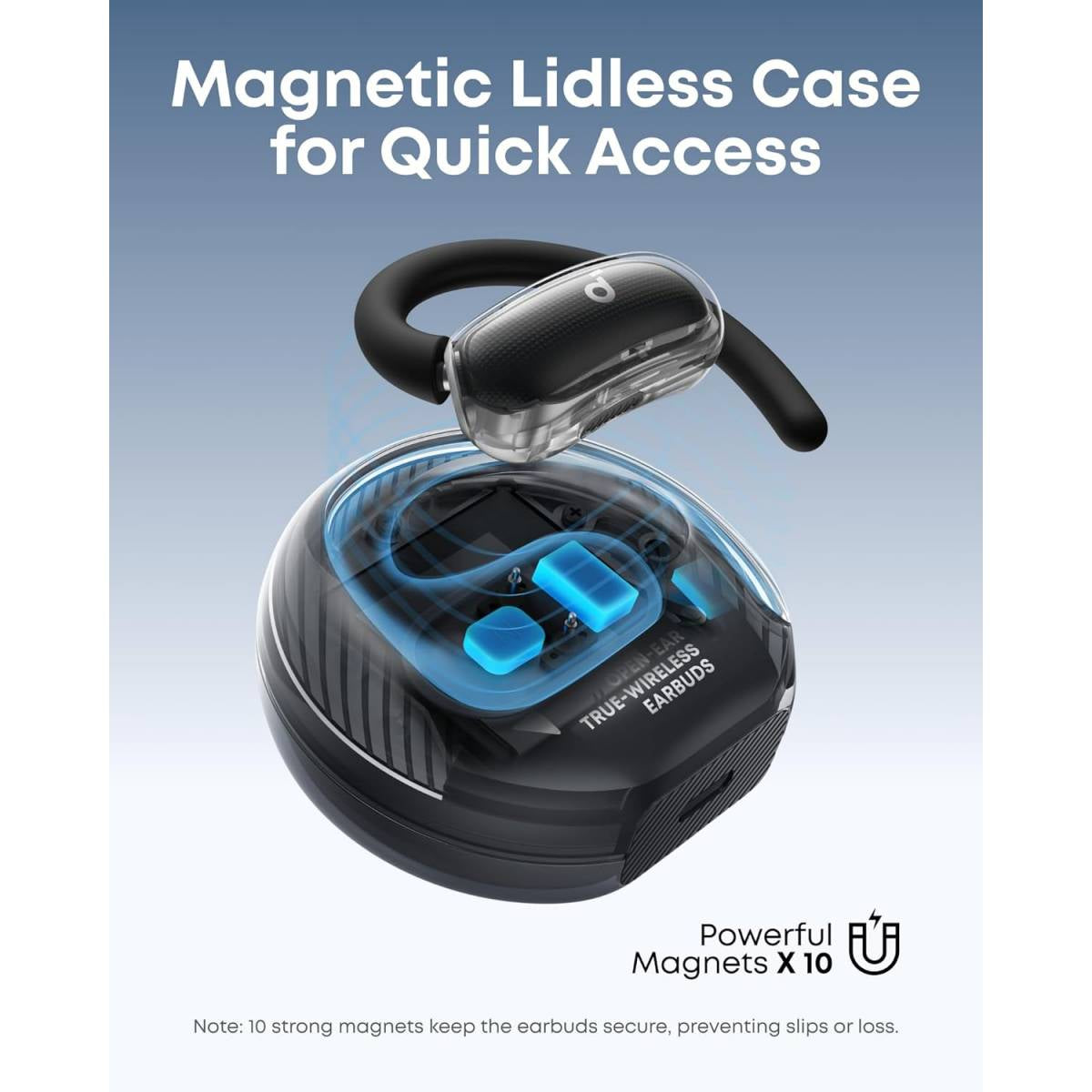 The Soundcore V40i features a revolutionary open-ear design with a lidless case and 4-position adjustable hooks, providing all-day comfort, rich bass, and crystal-clear AI calls for users in Jordan.