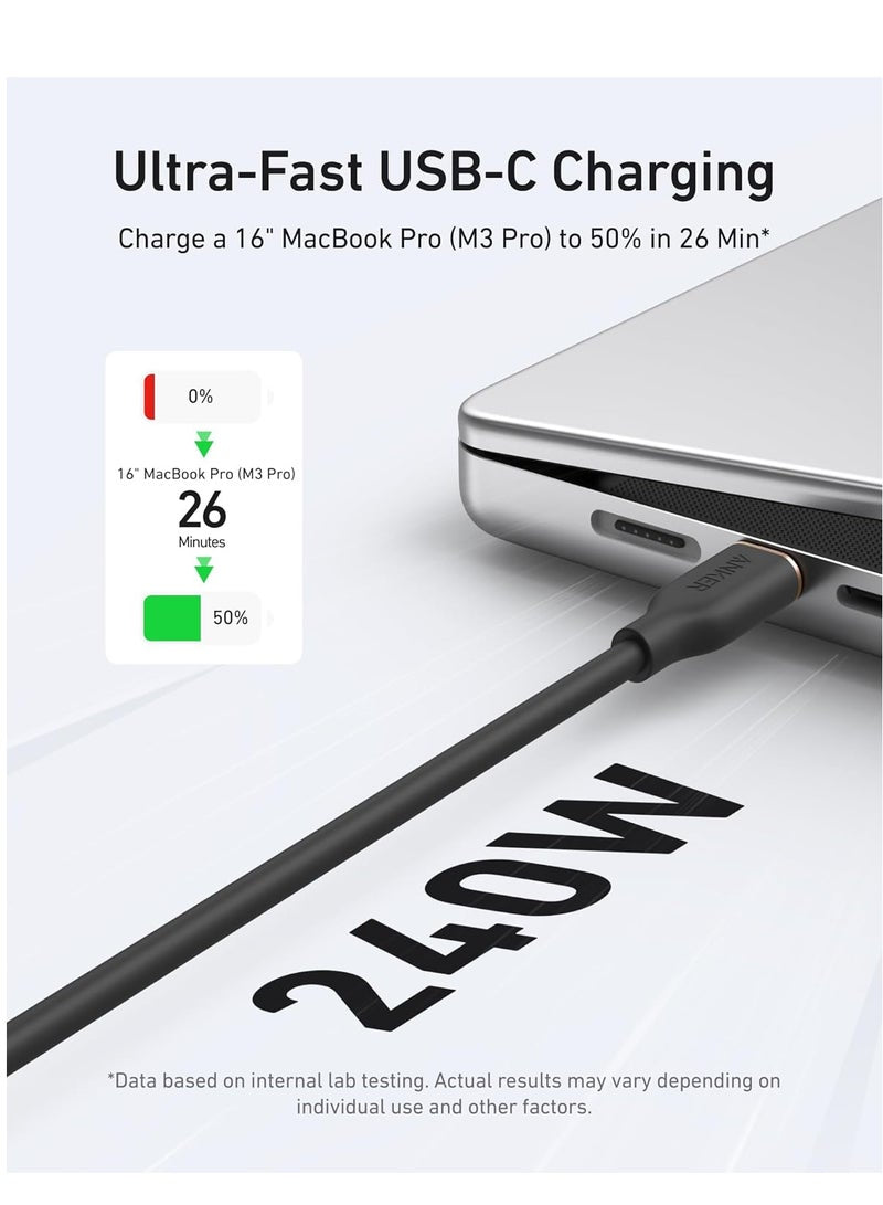 كابل USB-C إلى USB-C من Anker بدعم 240W للشحن الفائق السريع ونقل البيانات الموثوق — مثالي لأجهزة اللابتوب والهواتف والأجهزة اللوحية.