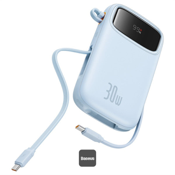 بسط روتينك اليومي مع باور بانك Baseus Qpow2 بقوة 30 واط. يلغي هذا الشاحن الصغير الحاجة إلى حمل أسلاك إضافية من خلال دمج كابلين Type-C عالي السرعة مباشرة في تصميمه. وعلى الرغم من حجمه الصغير، فإنه يقدم مخرجات طاقة تصل إلى 30 واط، مما يجعله قادراً على شحن أحدث الهواتف الذكية والأجهزة اللوحية بسرعات مبهرة.