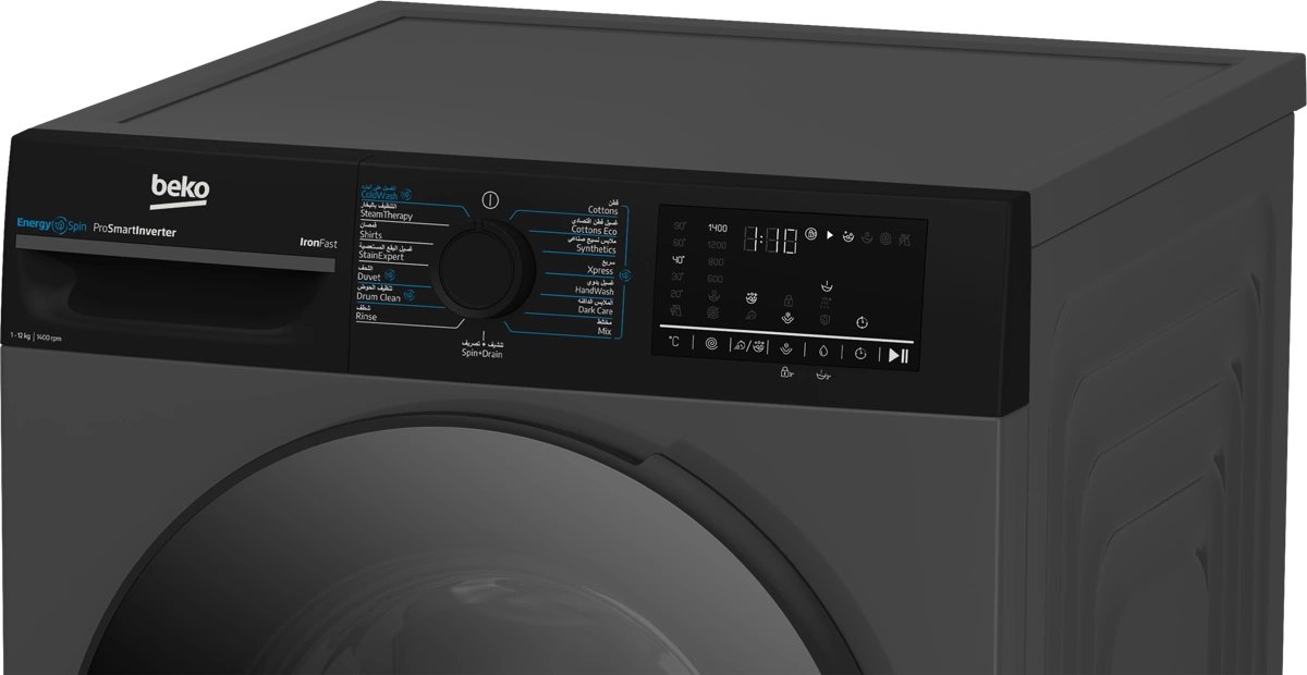ارتقِ بتجربة الغسيل الخاصة بك مع غسالة بيكو ذات التحميل الأمامي سعة 12 كجم. بفضل سعة الحلة الضخمة، تتعامل هذه الغسالة مع الأحمال الكبيرة مثل الألحفة الضخمة وأكوام الملابس العائلية بكل سهولة. يمنح لون الأنتراسيت الأنيق مظهراً عصرياً وفاخراً يتناسب مع أي منزل حديث. وفي قلبها محرك ProSmart Inverter الذي يوفر كفاءة معززة في استخدام الطاقة، ومستويات ضوضاء أقل، واعتمادية طويلة الأمد.