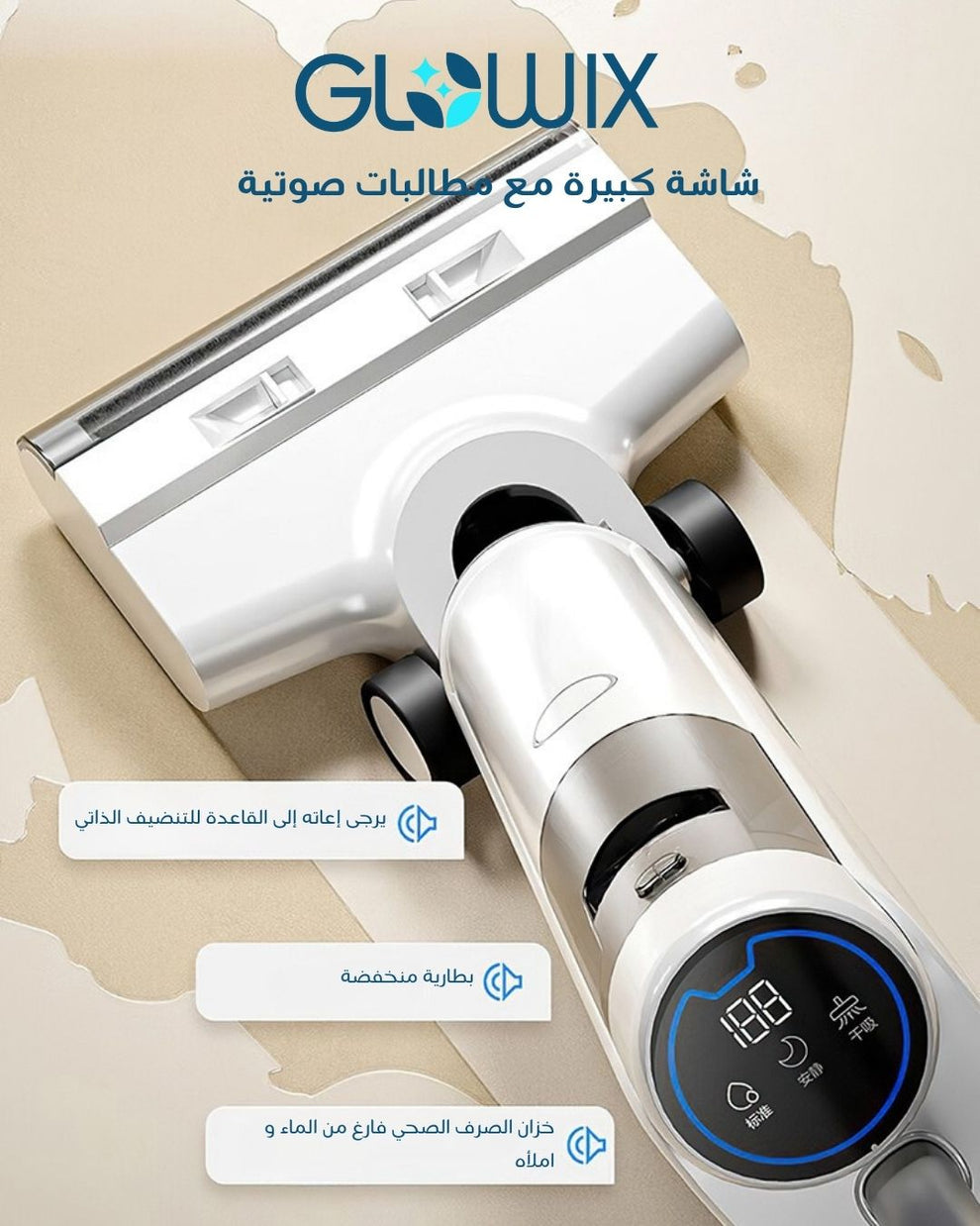 نظف بذكاء وسرعة أكبر مع مكنسة غسيل الأرضيات اللاسلكية جلوويكس HJ-6105. تقوم هذه المكنسة المتعددة الاستخدامات بكنس ومسح وفرك أرضياتك في خطوة واحدة، مما يوفر حلاً مثالياً لجميع أنواع الأسطح الصلبة.