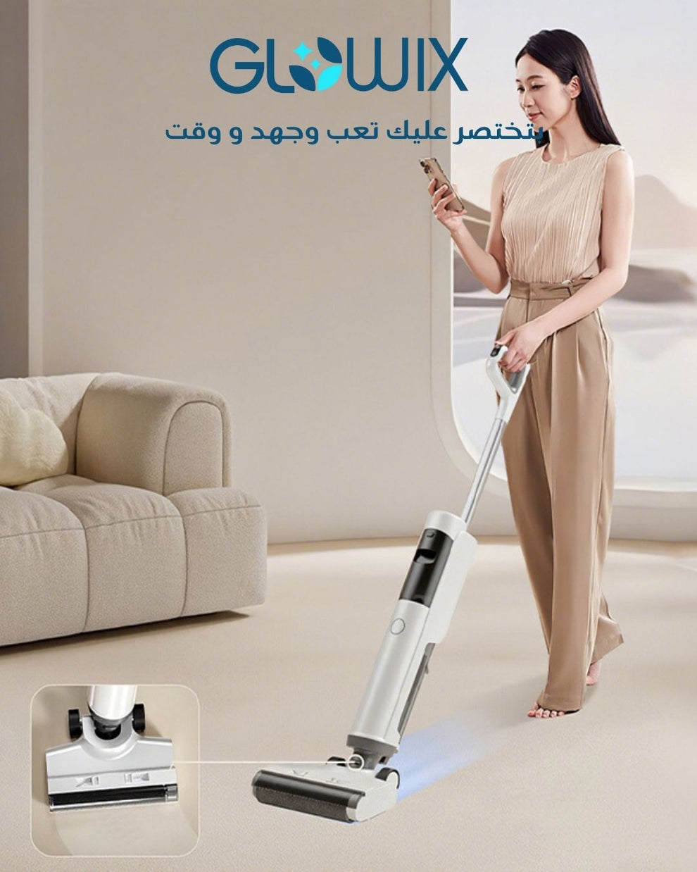 تم تصميم جلوويكس HJ-6105 لتبسيط العناية بالمنزل من خلال دمج الكنس والمسح في عملية واحدة فعالة. وبفضل محركها القوي، يمكنها التقاط الحطام الجاف بسهولة بينما تقوم في الوقت نفسه بغسل السوائل المسكوبة والبقايا اللزجة. يوفر تصميمها اللاسلكي حرية الحركة التي تحتاجها للتنظيف من غرفة إلى أخرى دون التقيد بمنافذ الكهرباء.