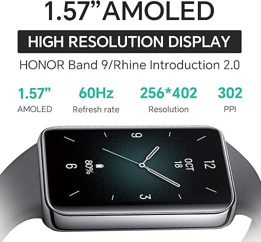 تم تصميم سوار HONOR Band 9 لتتبع اللياقة والصحة اليومية بشاشة AMOLED ساطعة بحجم 1.57″ مع معدل تحديث 60Hz لتجربة سلسة وواضحة لعرض الإشعارات وإحصائيات النشاط وأنماط الحركة.