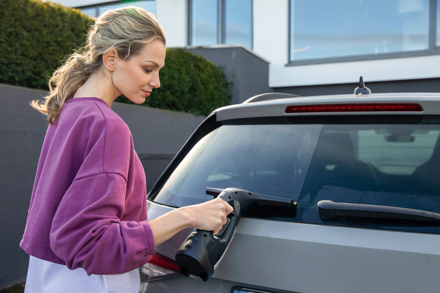 استمتع بنوافذ خالية من الخطوط مع Kärcher WV 2 الإصدار الأسود، الذي يتميز بشفط قوي وتصميم مريح.