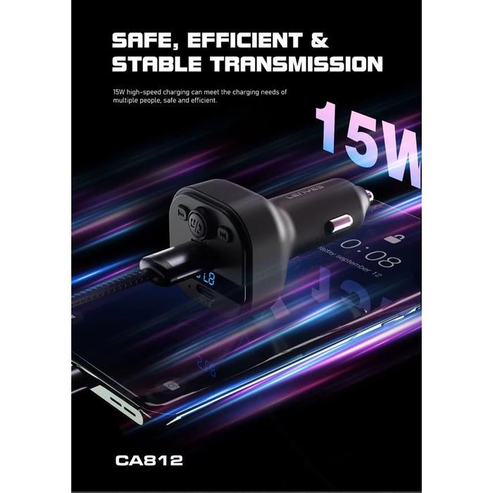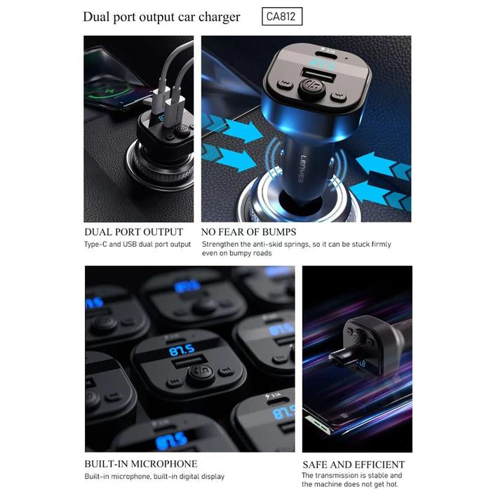 يحتوي الجهاز على منفذي شحن، بما في ذلك منفذ Type-C مخصص بتقنية Power Delivery (PD)، مما يضمن شحن هواتفك الذكية وأجهزتك اللوحية بأقصى سرعة ممكنة. يتميز التصميم الأسود الأنيق بإضاءة RGB ديناميكية تضيف لمسة جمالية وعصرية لمقصورة سيارتك. مع دعم تشغيل الموسيقى من الفلاش ميموري وشاشة رقمية لعرض التردد، يجمع CA812 بين سهولة الاستخدام والأداء القوي.