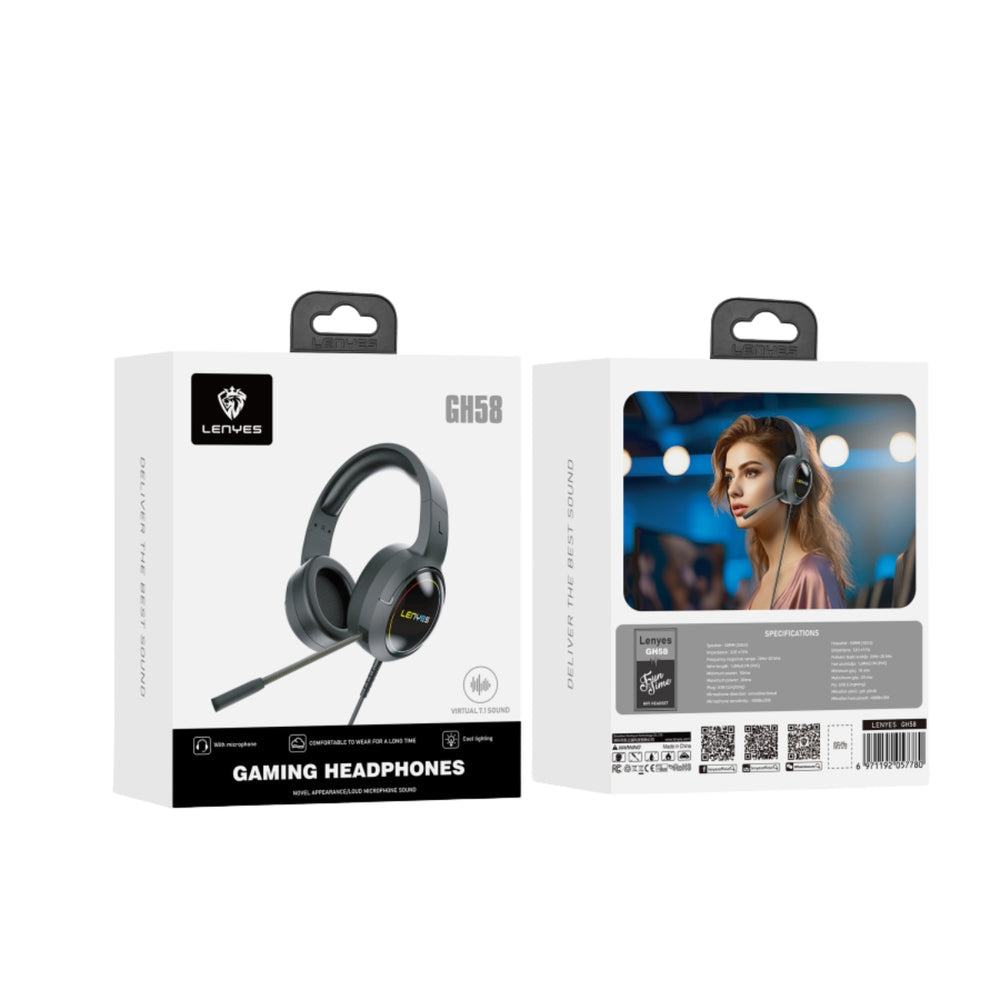 انتقل بألعابك إلى المستوى التالي مع سماعة الألعاب السلكية لينييس GH58. تتميز بصوت محيطي غامر، وميكروفون عالي الحساسية قابل للطي، وتأثيرات إضاءة RGB مذهلة، وقد صُممت هذه السماعة لتوفير الراحة والأداء العالي خلال جلسات اللعب الطويلة.