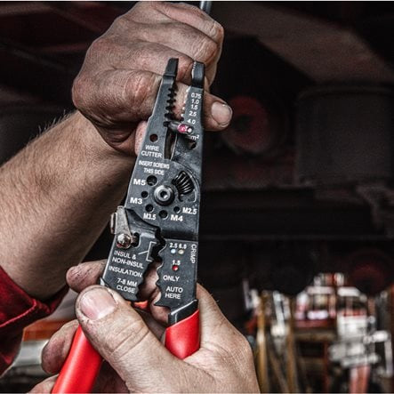 تعتبر زرادية ميلواكي لتجريد الأسلاك والكبس أداة كهربائية شاملة 7 في 1 مصممة لمواقع العمل الاحترافية. تجمع بين ميزات تجريد الأسلاك، والقطع، والكبس في أداة يدوية واحدة عالية المتانة لتحقيق أقصى قدر من الكفاءة.
