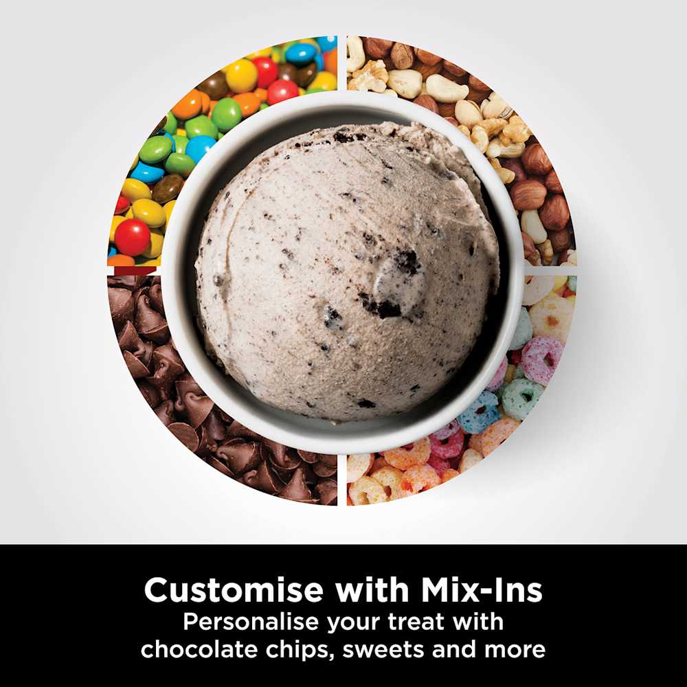 - 7 برامج تشغيل تلقائي: آيس كريم، جيلاتو، شوربة مثلجة، وعاء سموزي، آيس كريم خفيف، مشروب مخفوق (Milkshake)، ومزيج إضافات (Mix-Ins)