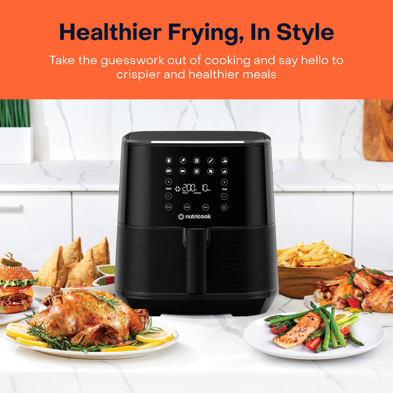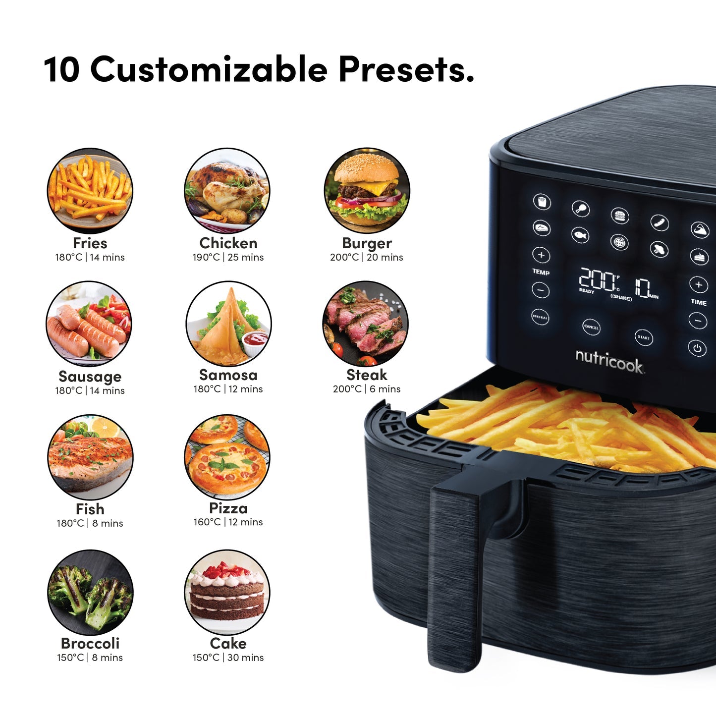 تصميم أنيق، وجبات صحية مع قليل من الزيت، 10 إعدادات مسبقة، خالية من BPA و PFOA، آمنة للتنظيف في غسالة الصحون.
