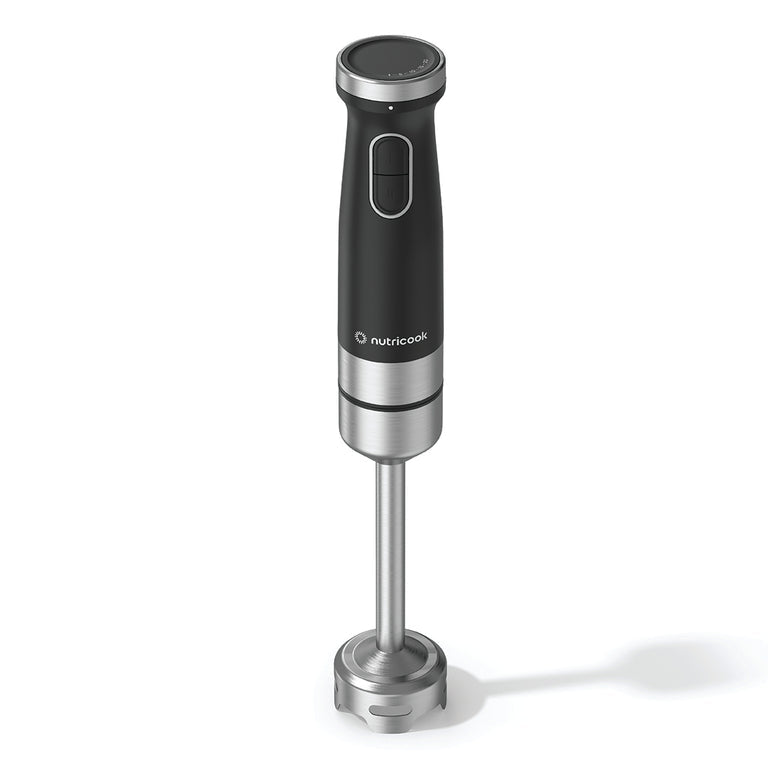 خلاط يدوي نيوتريكوك إيسنشالز (Hand Blender Essentials) عالي الأداء بقدرة 1200 واط، يتميز بشفرات متينة مطلية بالتيتانيوم وتحكم متغير في السرعة للخلط والفرم والفق بسهولة تامة.
