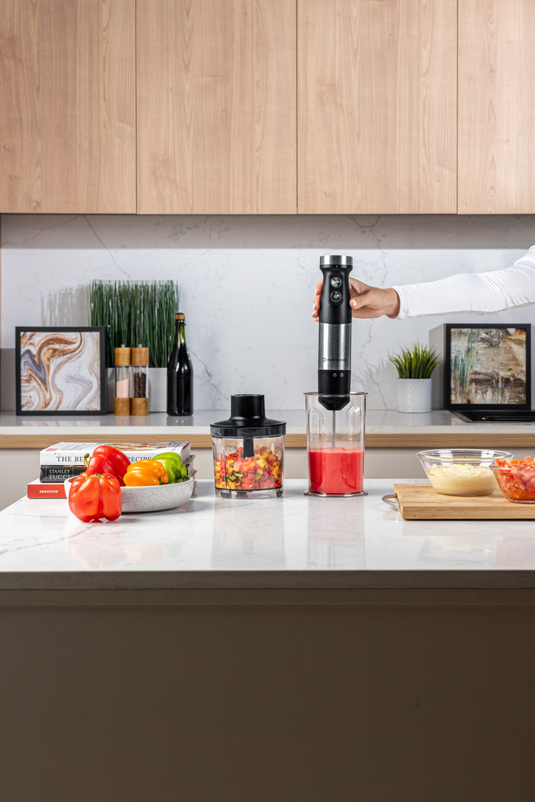 يتميز خلاط يدوي نيوتري كوك هاندي بأداء خلط لا مثيل له بفضل محركه القوي بقوة 1200 واط. هذه الأداة متعددة الاستخدامات مثالية لأي مطبخ، حيث توفر وظائف 4 في 1 للخلط والتقطيع والخفق والرغوة بسهولة. يضمن التصميم المريح سهولة التعامل، بينما يمكن تنظيف الملحقات القابلة للفصل بسهولة، مما يجعله ضرورة للأسر المزدحمة. استمتع بالتحكم الدقيق مع 20 إعدادًا للسرعة المتغيرة، مما يتيح لك تحقيق القوام المثالي في كل مرة. يعد نيوتري كوك هاندي رفيقك المثالي لإعداد الشوربات والعصائر والصلصات والمزيد، بأقل جهد وأقصى راحة.