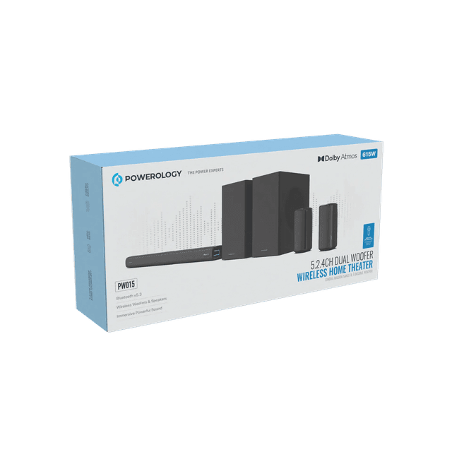 ارتقِ بالترفيه المنزلي إلى آفاق جديدة مع نظام الساوند بار من باورولوجي بنظام 5.2.4 قناة. تم تصميم هذا الإعداد الصوتي المتطور لينقل تجربة المسرح مباشرة إلى غرفة معيشتك. من خلال تكوينه الفريد، يستخدم النظام محركات متعددة لتوجيه الصوت وتوزيعه في أرجاء الغرفة، مما يخلق مسرحاً صوتياً متعدد الأبعاد يضعك في قلب الحدث تماماً.