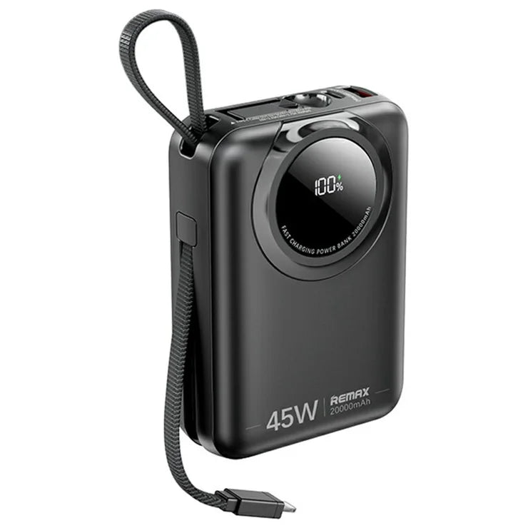 يقدم باور بانك Remax FC-02 بسعة 20,000mAh طاقة احتياطية موثوقة لأجهزتك أثناء التنقل، مع دعم للشحن السريع بقدرة تصل إلى 45W.