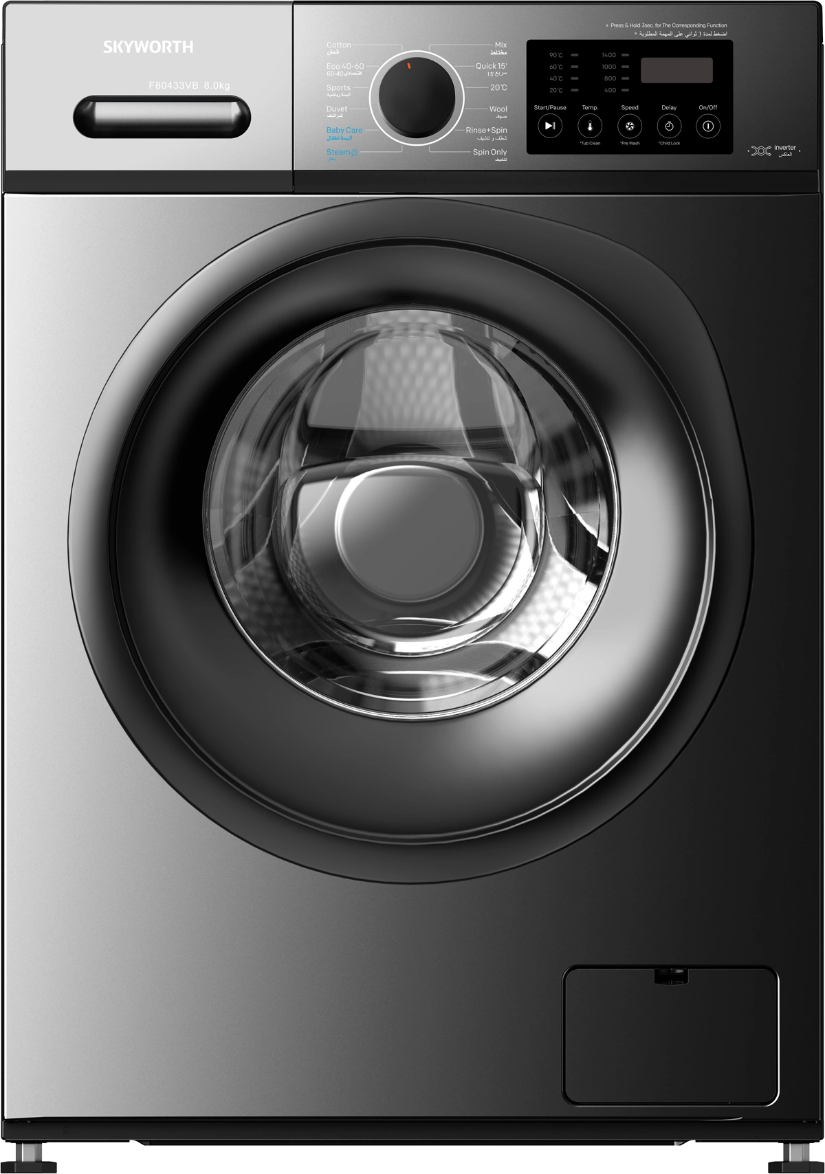 توفر هذه الغسالة 12 برنامجاً متنوعاً، بما في ذلك دورات متخصصة للقطنيات، الأقمشة الحساسة، والغسيل السريع، مما يضمن المعاملة المثالية لكل نوع من أنواع الأقمشة. تجعل لوحة التحكم البديهية وشاشة LED من السهل مراقبة الإعدادات وضبطها. صُممت غسالة سكاي وورث مع مراعاة كفاءة استهلاك المياه والطاقة، وهي تقدم تنظيفاً قوياً مع الحفاظ على سلامة ملابسك وتوفير فواتير المرافق.