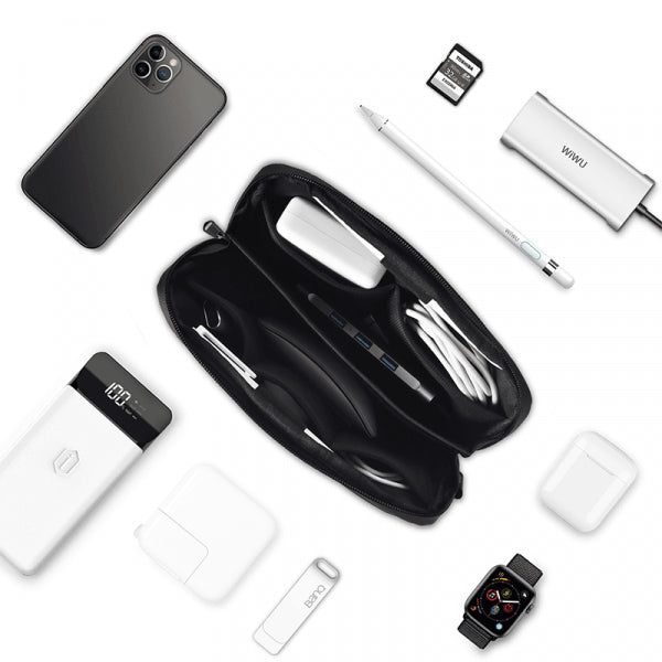 تُعد WiWU Alpha Tech Pouch الحل الأمثل لتنظيم إكسسواراتك التقنية في مكان واحد، حيث توفر مساحة واسعة وتصميماً مقسماً بذكاء لحماية الشواحن، الكابلات، والباور بانك من الضياع أو التلف.